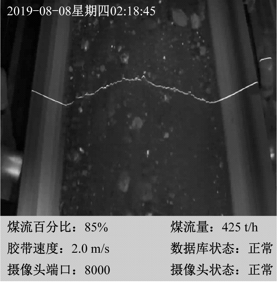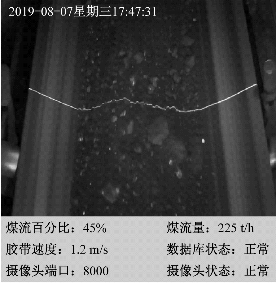 基于机器视觉的矿井输煤系统优化节能控制方法将带式输送机煤流量检测与变频调速控制相结合。利用激光发射器辅助数字摄像头分别采集带式输送机空载和有载情况下包含激光条纹的煤流图像,对图像进行预处理去除异常噪声干扰,利用方向模板法提取图像中激光条纹中心线并采用线性插值法进行中心线断线修补,获得带式输送机空载状态下胶带激光基线中心线和带式输送机有载状态下煤流激光轮廓中心线叠加形成的封闭包络曲线,计算该曲线所围成截面内瞬时煤流量;根据煤流量检测结果,PLC模糊控制器通过调整变频器输出频率,实现带式输送机运行速度自动调节;地面控制中心信息处理平台负责数据收集、处理及显示,实现矿井输煤系统的可视化监控和智能管理。该方法可快速、有效检测煤流量,根据煤流量实时调整带式输送机运行速度,降低设备磨损和能耗,实现矿井输煤系统优化节能控制。