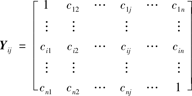 相似度cij∈[0,1]。1-cij值越小,说明证据Fi与证据Fj越接近;1-cij值越大,说明证据Fi与证据Fj冲突越严重。相似度矩阵Yij可表征集合D中的某个元素与另一元素的相似度关系: