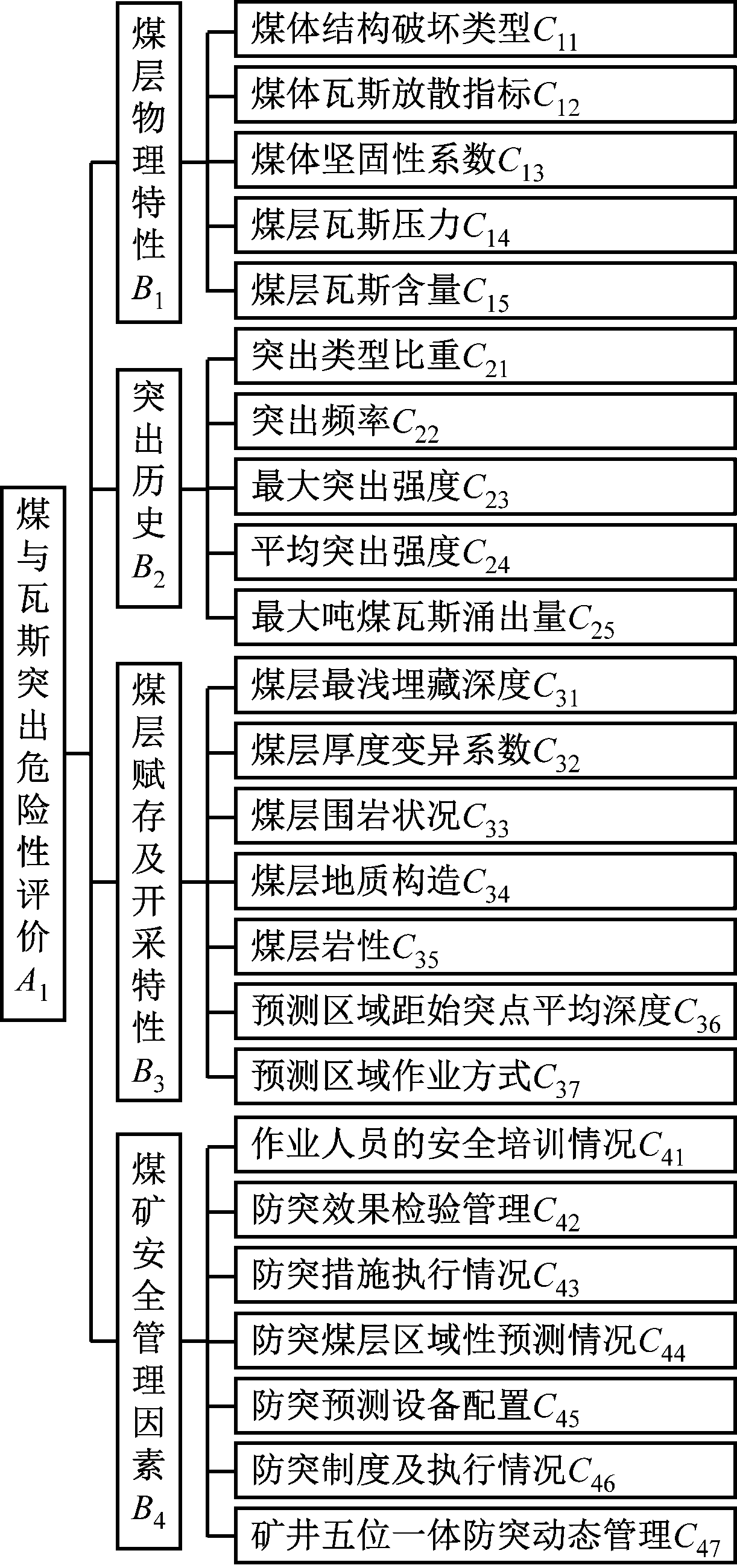 Fig.1 Evaluation index system of coal and gas outburst risk