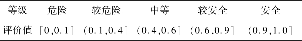 等级危险较危险中等较安全安全评价值[0,0.1](0.1,0.4](0.4,0.6](0.6,0.9](0.9,1.0]