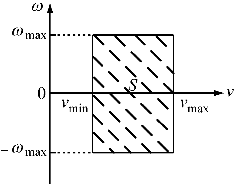 Va={(v,ω)|0≤v≤vmax,-ωmax≤ω≤ωmax}