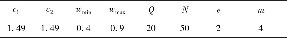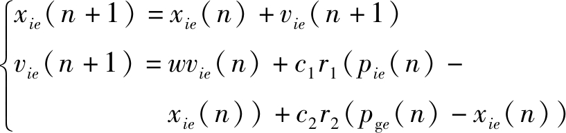 式中:xie(n+1)和xie(n)分别为种群在第n+1次和第n次迭代时第i个粒子在e维的位置;vie(n+1)和vie(n)分别为种群在第n+1次和第n次迭代中第i个粒子在e维的速度;w为惯性权重[16],wmin和wmax分别为惯性权重的最小值和最大值,N为最大迭代次数;c1和c2为学习因子;r1和r2为[0,1]之间的随机数;pie(n)和pge(n)分别为种群第n次迭代时第i个粒子在e维的历史最优位置和种群在e维上的历史最优位置。