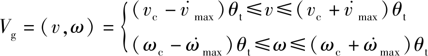 受电动机力矩影响,煤矿移动机器人存在最大加减速度,所以,在固定时间间隔θt内,煤矿移动机器人允许的最大速度变化范围为