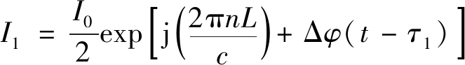 式中:I0为探测光输入光功率;c为光波传播速度;t为时间;τ1,τ2分别为探测光经过路径①和路径②到达光纤探头的时间。
