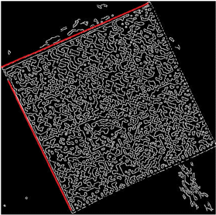 (5) 采用改进的Hough变换检测Data Matrix码的L型直线。