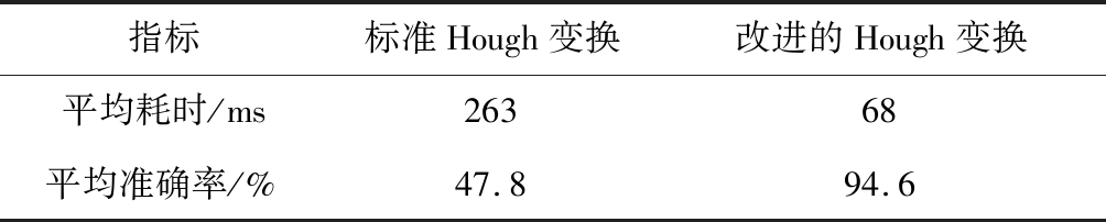 指标标准Hough变换改进的Hough变换平均耗时/ms26368平均准确率/%47.894.6