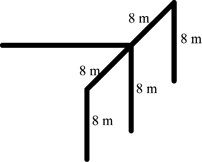为了研究接地网形式对降阻效果的影响,建立“Τ”型、“Γ”型、垂直型、方框型4种辅助接地网模型。设置土壤电阻率为250 Ω·m,入地电流为20 kA,辅助接地网长度为40 m,垂直型接地网每段长度为8 m,垂直型接地网模型如图4所示。