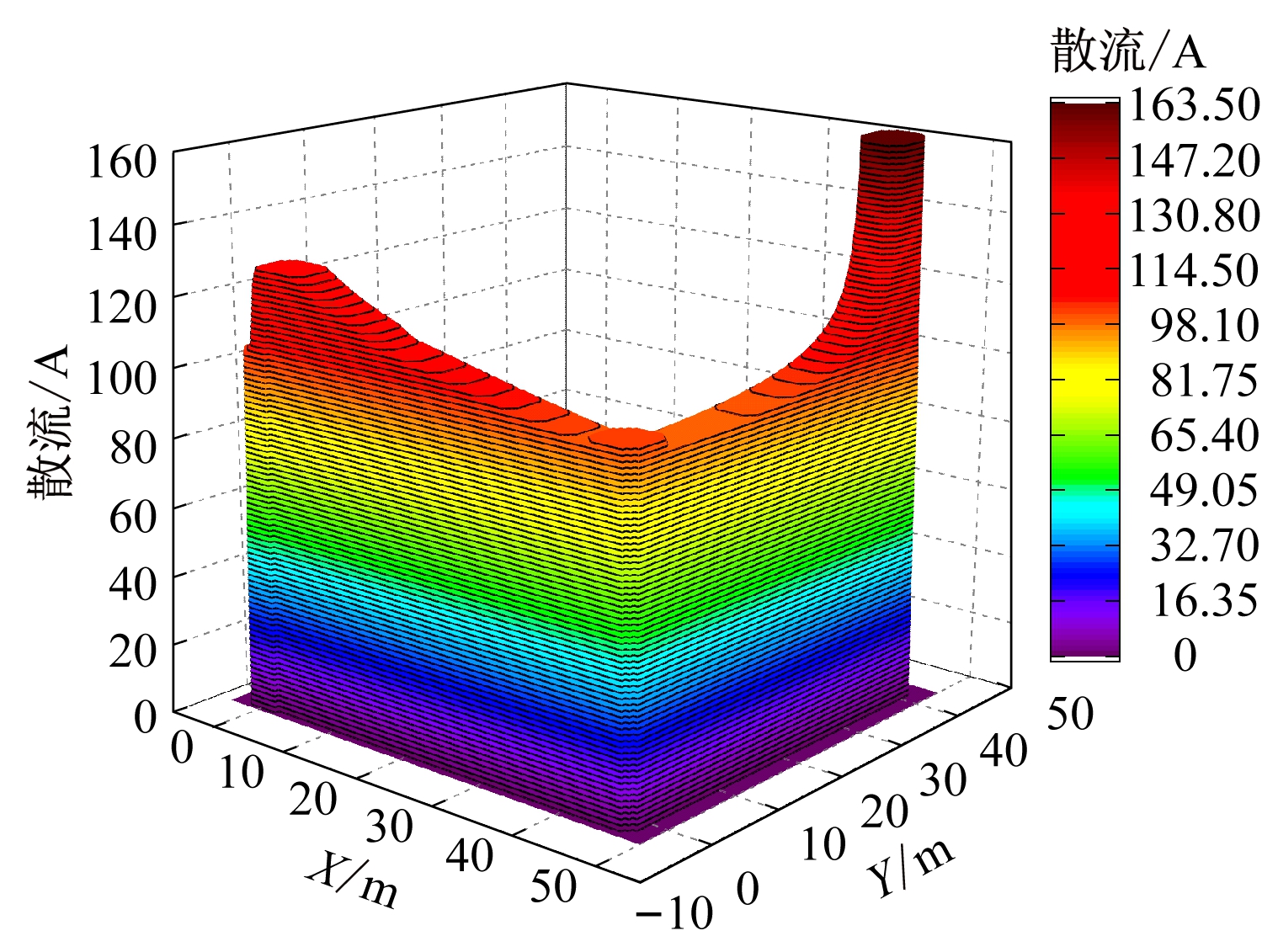 Fig.6 Stray current distribution of "Γ" type auxiliary grounding grid