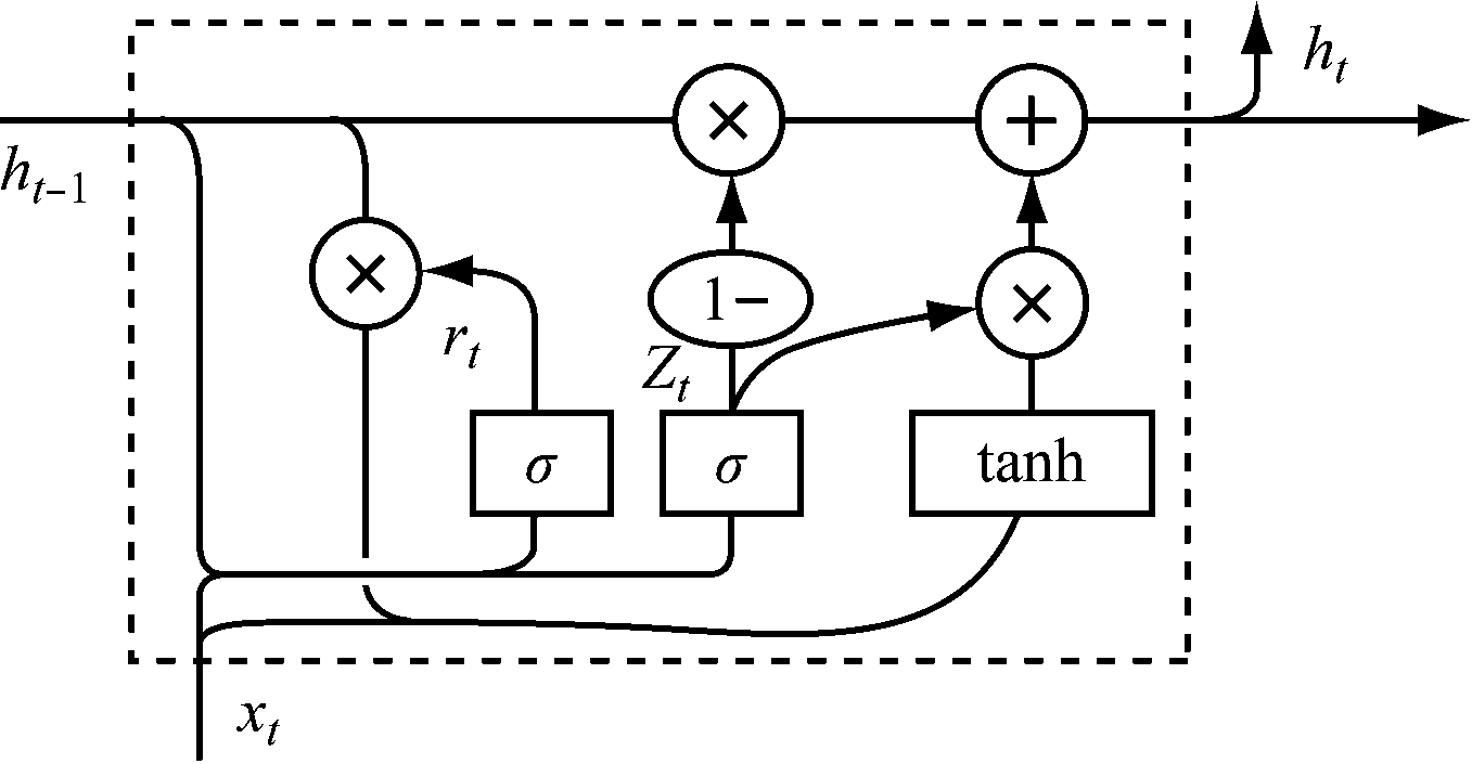 ht=GRU(ht-1,Dt)=(1-zt)ht-1+