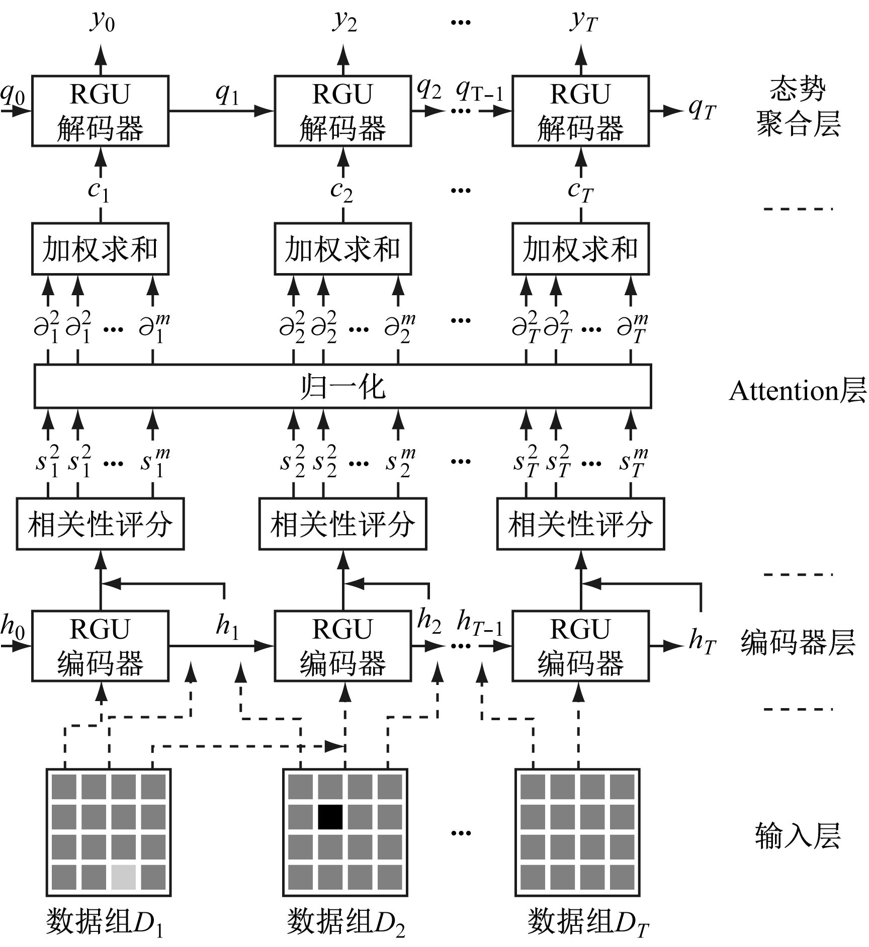 (4) 态势聚合层。态势聚合层由GRU解码器组成。GRU解码器与GRU编码器一样通过门控机制控制信息流动,GRU解码器之间的传递信息为