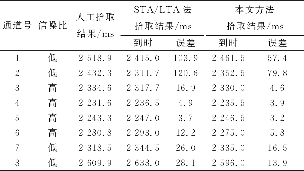 Table 1 Result statistics of eight-channel microseismic first arrival picking