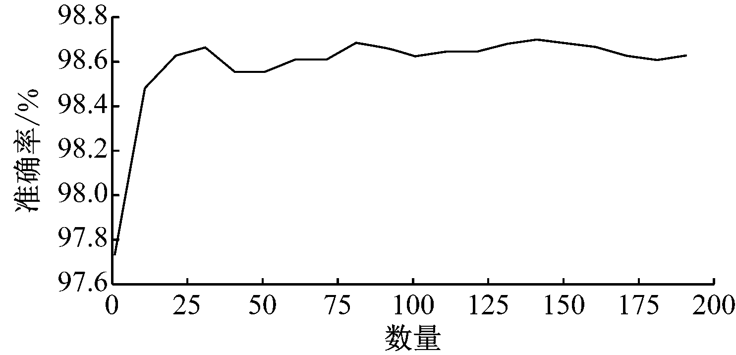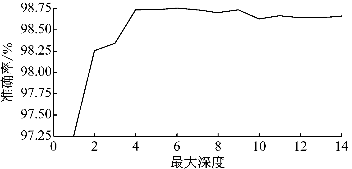 将上述过程执行γ次,生成γ棵决策树,并对其进行组合,生成随机森林模型。将验证集V输入随机森林模型中,直到输出结果满足预设精度要求,得到最优随机森林模型。在构建随机森林模型过程中,振幅、能量和相邻时刻振幅比3种特征的重要度分别为0.285 7,0.419 4,0.294 9。