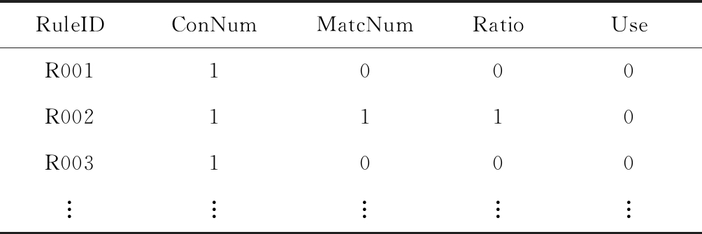 RuleIDConNumMatcNumRatioUseR0011000R0021110R0031000︙︙︙︙︙