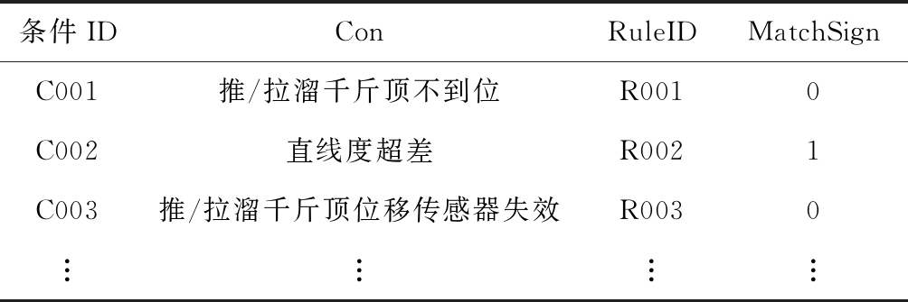 条件IDConRuleIDMatchSignC001推/拉溜千斤顶不到位R0010C002直线度超差R0021C003推/拉溜千斤顶位移传感器失效R0030︙︙︙︙