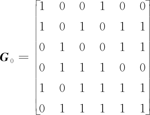 利用开关状态信息矩阵G,从节点-支路关联矩阵A中提取与G中所有gj=1的元素列下标相同的m个列向量并删去空白节点行,形成矿山供电系统场景区域矩阵A0。已知式(7)中第1、3、5、6个元素为1,提取式(5)中第1、3、5、6列,并删去空白节点行,形成场景区域矩阵A0: