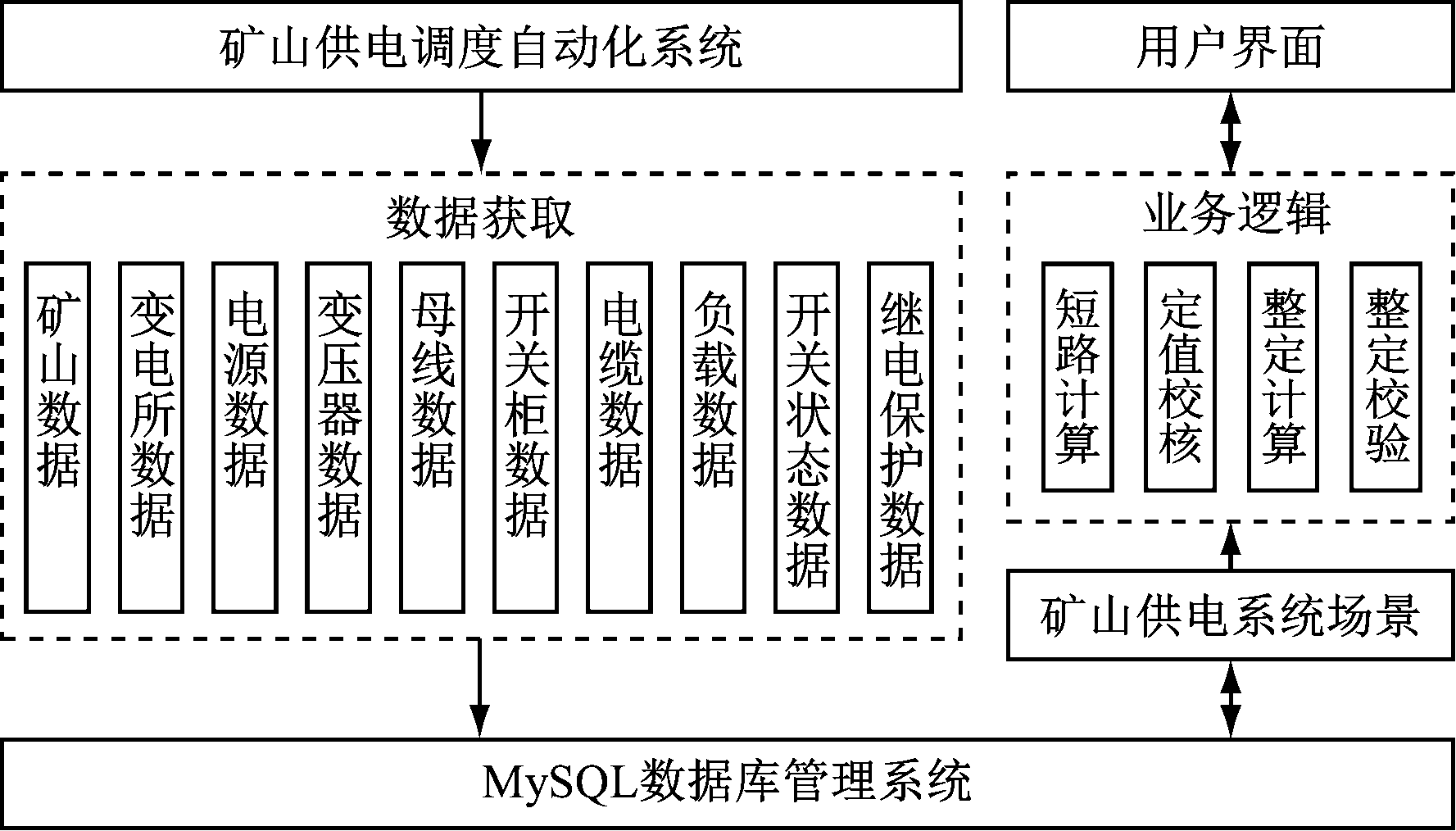 随着煤矿生产规模的不断扩大,矿山电网变得越来越庞大和复杂。目前矿山供电调度自动化系统在煤矿中普遍应用,用于监控矿山供电系统中的主要设备(变压器、电动机)的运行参数、断路器的开关状态及各线路的负荷大小,从而使调度运行人员能及时指挥安排生产,减少事故发生[1-2]。经现场调研,当前运行的大多数矿山供电调度自动化系统中继电保护定值计算及校核功能相对较弱,一般是由技术人员在线下计算出保护定值,然后通过矿山供电调度自动化系统输入到相应的继电保护装置中[3-5]。但在实际运行中,电网中的运行方式经常改变,继电保护的定值无法得到及时更新,容易发生保护装置的误动或拒动。