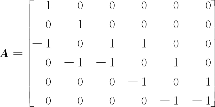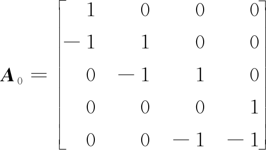 图2所示的场景中有6个节点和6条支路,其节点-支路关联矩阵A为