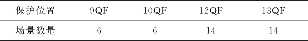 图1中有4段母线,根据上文中场景的定义,每段母线对应着不同的场景类,上文中已给出9QF所在出线的母线对应的一组场景,其余各组场景不再赘述。保护位置所在出线的母线对应场景类中场景数量见表1。