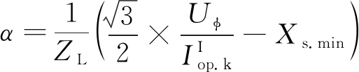 式中:α为瞬时电流速断保护的最小保护范围;ZL为被保护线路单位长度的阻抗;Xs.min为系统最小运行方式下所对应的系统最大电抗值。