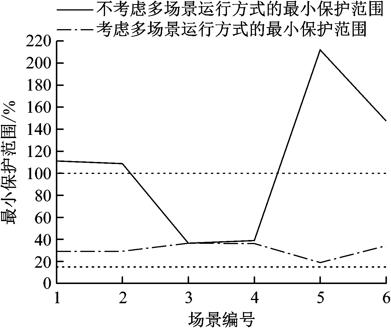 图12 不考虑多场景运行方式和考虑多场景运行方式的瞬时速断保护的最小保护范围