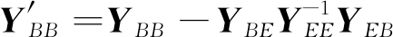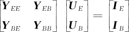 设有n个节点的网络,消去其中的1,2,…,m号节点,保留m+1,m+2,…,n号节点。设E为消去节点集,B为保留节点集,经过矩阵分块后,原网络方程矩阵为