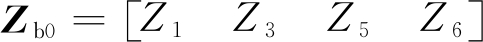 同样,利用开关状态信息矩阵G,在网络支路阻抗矩阵Zb中提取与G中所有gj=1的元素列下标相同的m个列向量,形成矿山供电系统场景网络支路阻抗矩阵Zb0。已知式(7)中第1、3、5、6个元素为1,提取式(9)中第1、3、5、6列,形成场景网络支路阻抗矩阵Zb0: