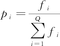 (3) 选择。以适应度为选择原则,通过目标函数计算第i(i=1,2,…,Q,Q为种群大小)个个体适应度fi,根据适应度比例法,第i个个体被选取的概率为