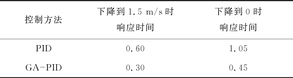 控制方法下降到1.5 m/s时响应时间下降到0时响应时间PID0.601.05GA-PID0.300.45