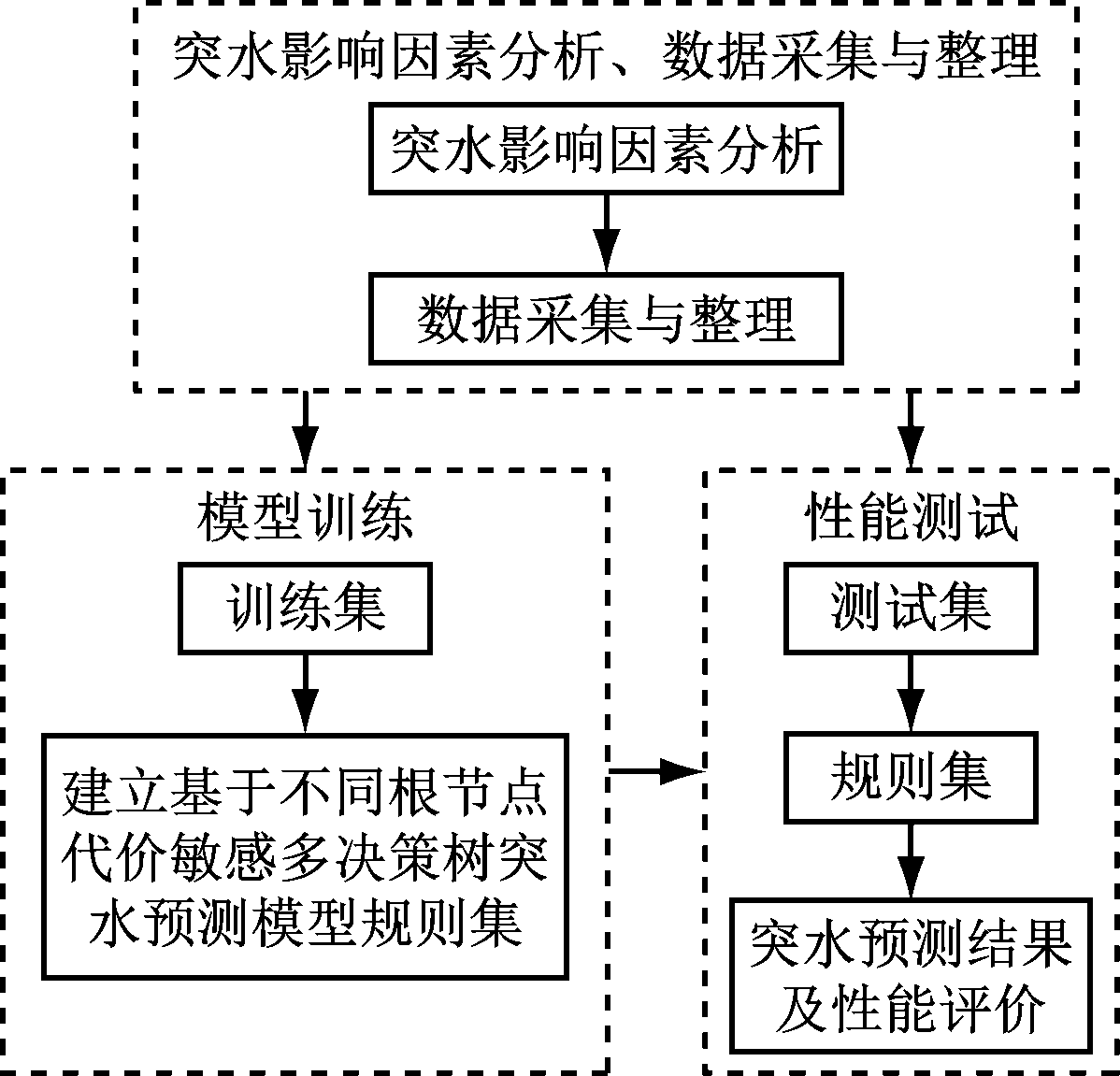 基于代价敏感理论的单决策树突水预测模型构建流程如下: