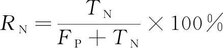 真实负类率RN:反映了多数类安全状况的预测结果准确度,其值越大,说明突水预测模型对安全状况的预测结果越精确。