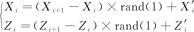 为Xi,Xi+1生成的插值;(Xi+1,Zi+1)为下一时刻的方位坐标;rand(1)为0~1之间的随机数;