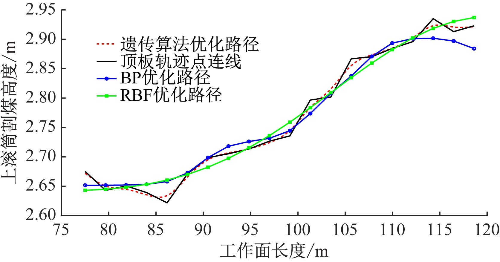 (2) 通过遗传算法优化得到了较为光滑的割煤路径,其中上滚筒割煤路径与顶板误差为0.183 9~0.349 3 m,误差较小,表明优化路径有效减少了切矸量,提高了采出率,在产量管理和实时管理方面具有一定的指导意义。