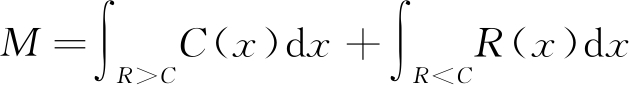 式中:M为采煤机实际截割煤量;C(x)为上滚筒割煤路径;R(x)为煤层与岩层的交界线。