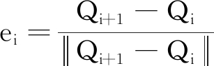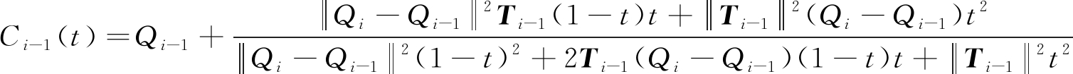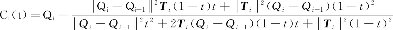 根据图5可知,在各控制点上存在切向量Ti(i=1,2,…,n)。以Qi-1,Qi为例,在Qi-1,Qi点处存在切向量Ti-1,Ti,则Ci-1,Ci圆弧可表示为