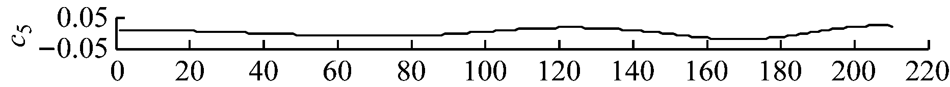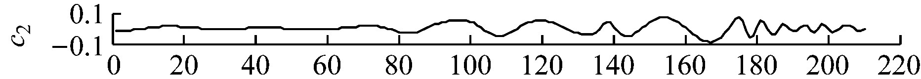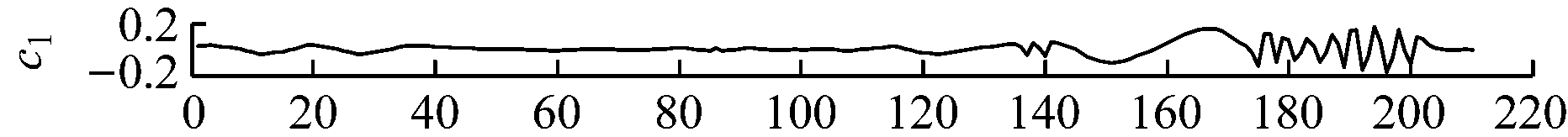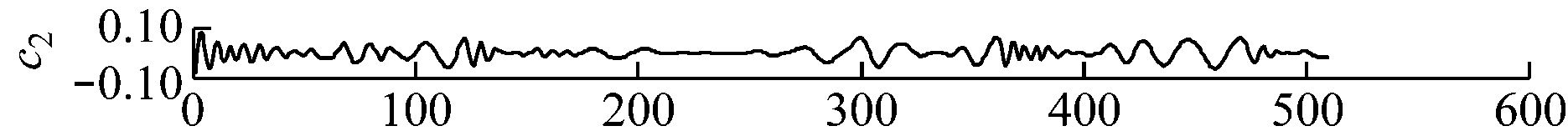 将频率相对较高的c1,c2划分为高频子序列,如图5所示,可看出其震荡比较强烈。将高频子序列各采样点信号构造为二维特征对SVM预测模型进行训练,得到高频子序列的9个预测值,如图6所示。