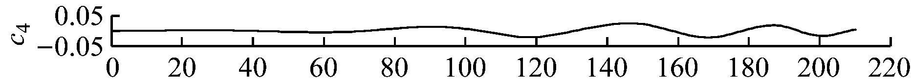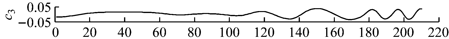 将c3,c4,c5,r划分为低频子序列,如图7所示,可看出其震荡比较缓和。将低频子序列对应的各采样点信号构造为四维特征对SVM预测模型进行训练,得到低频子序列的9个预测值,如图8所示。