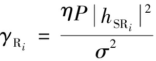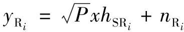 源节点发送的信号x一部分被内部电路转换为能量,另一部分通过中继解码转发。第i个中继节点Ri将接收信号重新编码转发至目的节点。节点Ri接收的信号yRi及其收集的能量ER(i)分别为