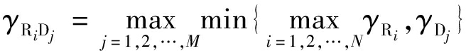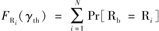 式中:FRi(γth)和FDj(γth)分别为γRi和γDj的累积分布函数;Rb=Ri,Db=Dj表示满足条件的节点Rb,Db分别被选为最佳中继和目的节点。