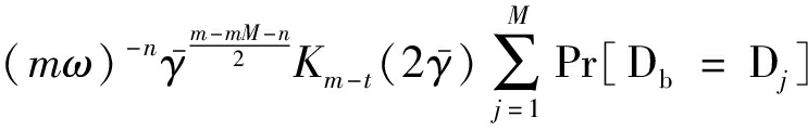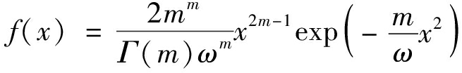 Nakagami-m衰落模型采用Gamma分布密度函数拟合实验数据,对实测数据具有很好的拟合性。在Nakagami-m衰落模型中,接收信号服从m分布,其概率密度函数为[14]