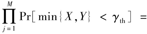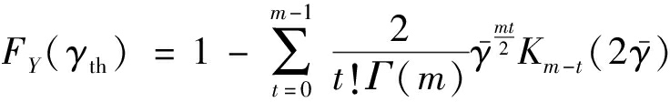 通过对密度函数积分,可得出式(18)中累计分布函数FX(γth)和FY(γth)表达式为