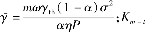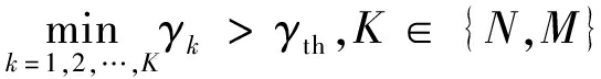 式中:γ为数据信噪比;Bth为目标数据速率;Pr[·]表示满足一定条件时的概率;γth=2Bth-1。