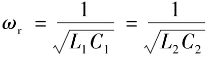 MR-WPT系统发射线圈与接收线圈的漏感会降低电能传输效率,因此,应在线圈上加补偿电容,以消除漏感对电能传输效率的影响。同时,补偿网络与漏感构成谐振网络可消除逆变电路产生的高次谐波影响。一般来说,补偿网络可分为原边补偿和副边补偿2个部分。原边的补偿电容是为了中和原边的漏感抗和副边的映射感抗,从而提高逆变电源效率。而副边补偿是为了减小副边的无功功率,增大感应电源的输出功率。根据拓扑结构的不同,补偿可分为串联补偿和并联补偿,这里以最常见的原边串联-副边串联型补偿网络为例进行分析,初级线圈和次级线圈均采用串联补偿方式,如图3所示。