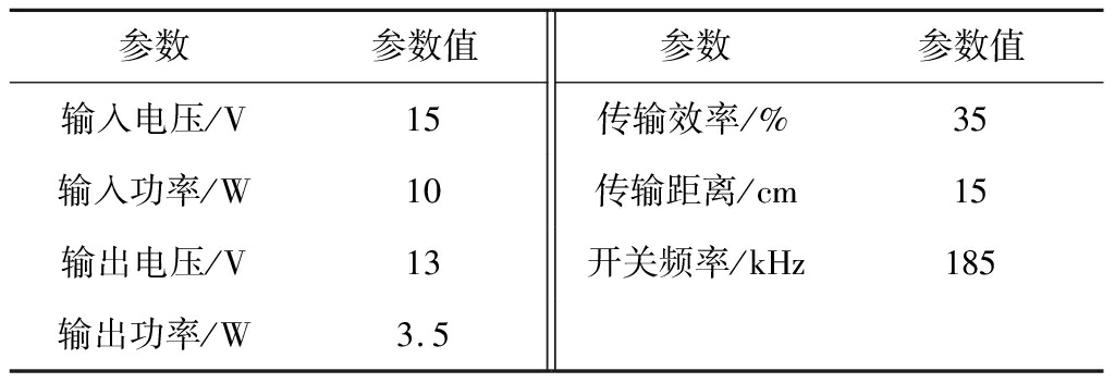 为了进一步验证上述阻抗匹配方法的正确性,搭建了MR-WPT系统的实验样机,如图8所示,激励源采用E类功率放大器,系统各元件参数见表1,采用Boost电路进行负载阻抗匹配。