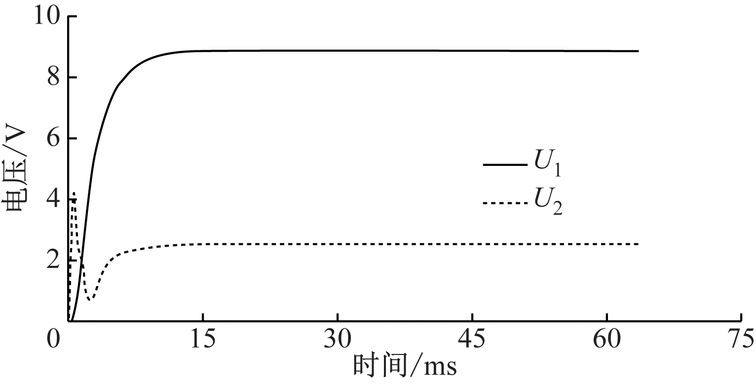 仿真结果如图7所示,U1为Boost电路升压后的电压,U2为整流输出的电压,通过Boost电路的调节,将整流输出电压由2.2 V提高到8.5 V,从而提高了输出功率。通过仿真数据计算可知,MR-WPT系统传输效率为38%,与理论分析一致。由此可知,利用本文提出的阻抗匹配方法,可将负载电阻匹配到最佳负载电阻值,MR-WPT系统可以工作在最佳效率工作点。