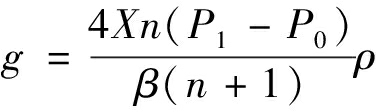 式中:X为测量室内瓦斯体积分数,%;n为多变曲线指数;P1为测量室内瓦斯压力,MPa;P0为测量室外煤体瓦斯压力,MPa;β为与测量室体积成反比的常数;ρ为钻孔直径,m。