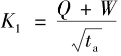 式中:K1为钻屑解析特征,mL/(g·min1/2);Q为钻屑装入预测装置后向密闭空间解析出的瓦斯量,mL/g;W为煤样自煤体剥落至装入预测装置之前暴露在空气中时向空气中解析出的瓦斯量,mL/g;ta为钻屑从煤体剥落到输出解析结果所用的总时间,min。