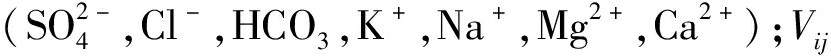 式中:Ni(i=1,2,…,n,n为总体数,即水样类型数)为第i个总体;cj(j=1,2,…,m,m为水化学特征数)为Ni的水化学特征,本文指水样的特征离子