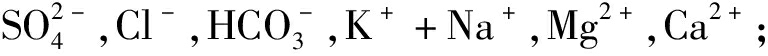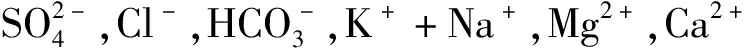 根据表1数据,采用AqQA软件绘制Piper三线图,如图1所示。通过水样的落点位置分析水样来源及各含水层的水化学特征。