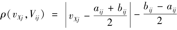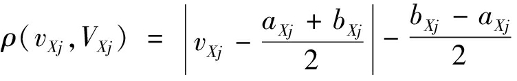 式中:VXj为待判水样水化学特征cj含量区间;aXj为VXj下限;bXj为VXj上限。