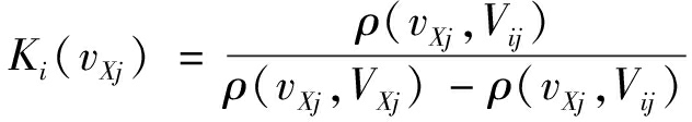 式中:vXj为待判水样水化学特征cj含量;ρ(vXj,Vij)为vXj到Vij的距;ρ(vXj,VXj)为vXj到VXj的距。